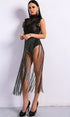 Description: Black Fringe Tassel Bodysuit Dress